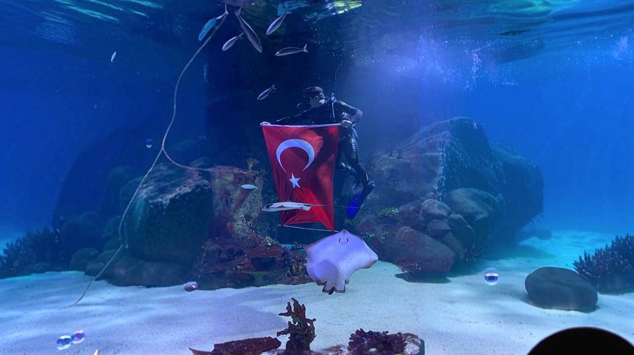 Milli günlerde su altı bayrak açma gösterilerimizle, bağımsızlığımızın ve birlikteliğimizin simgesini maviliklere taşıyoruz. Bu özel anlarda su altının büyülü atmosferinde dalgalanan bayrağımızla unutulmaz bir deneyime tanık olun! Milli duygularla dolu bu unutulmaz dalış gösterisini yakından izlemek için sizi de bekleriz!